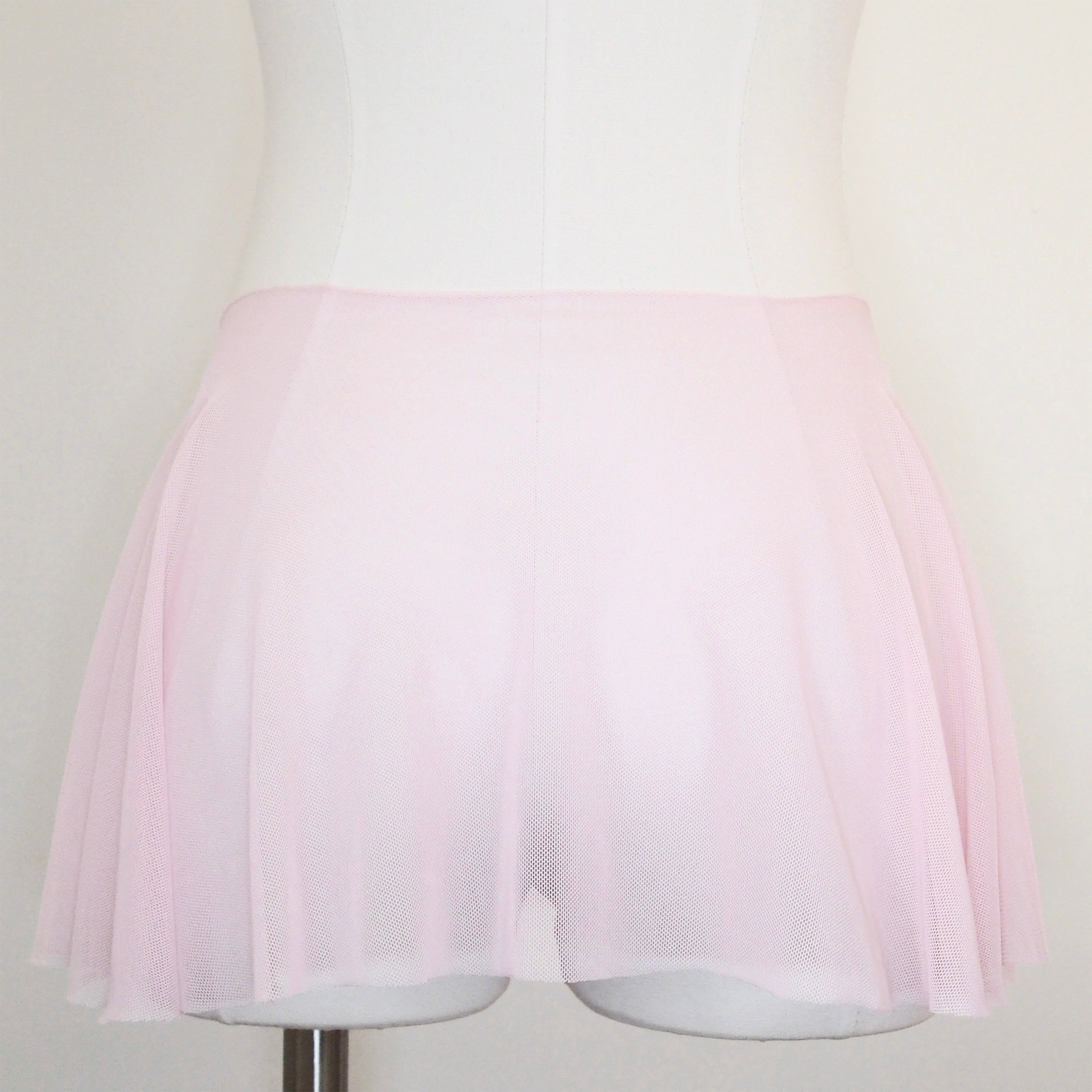 The Flounce Micro Skirt is a handmade baby pink flounce micro skirt featuring a seamless low waisted silhouette.