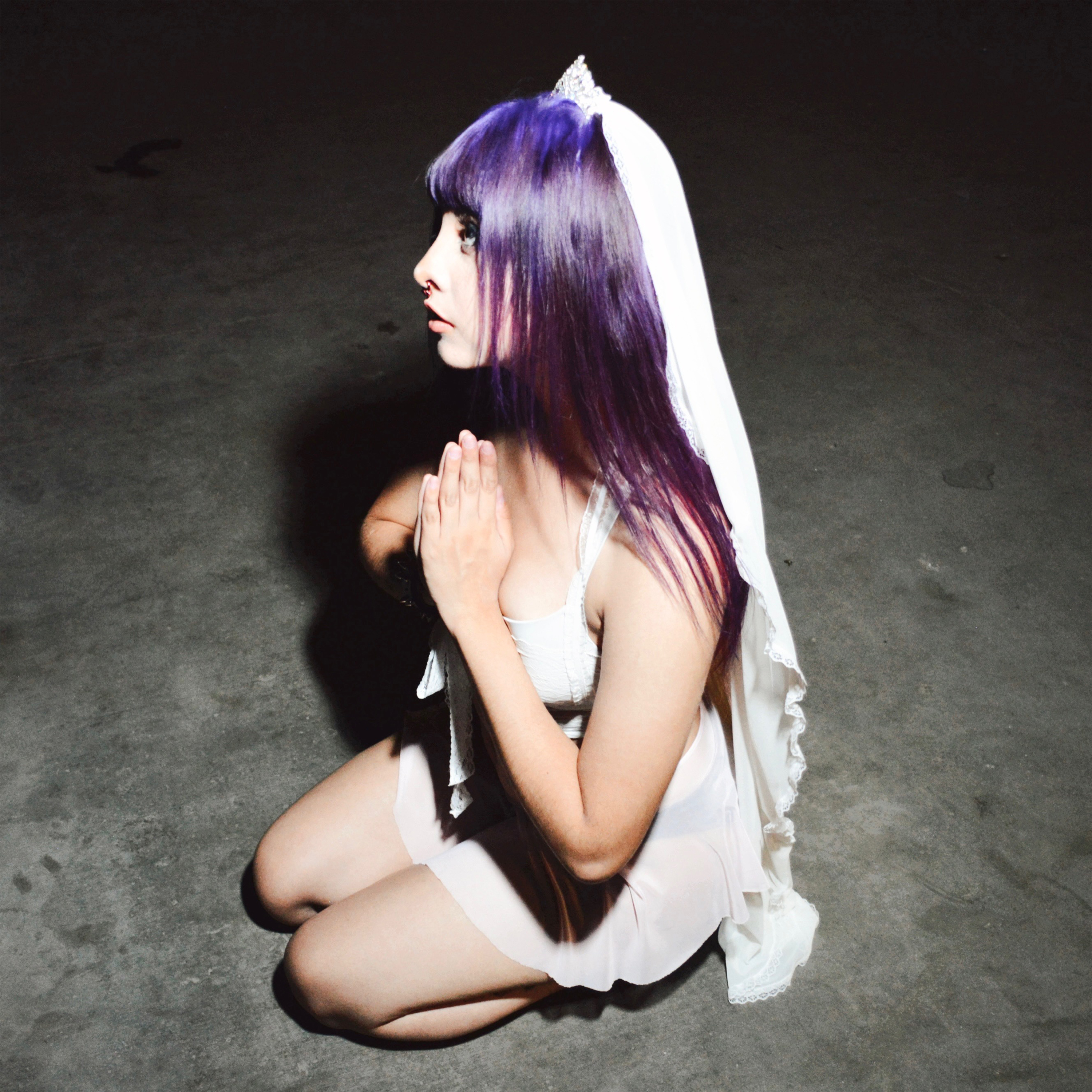 The Princess Hood is a handmade sheer baby pink hooded shawl featuring a raw hem and satin tie detailing.