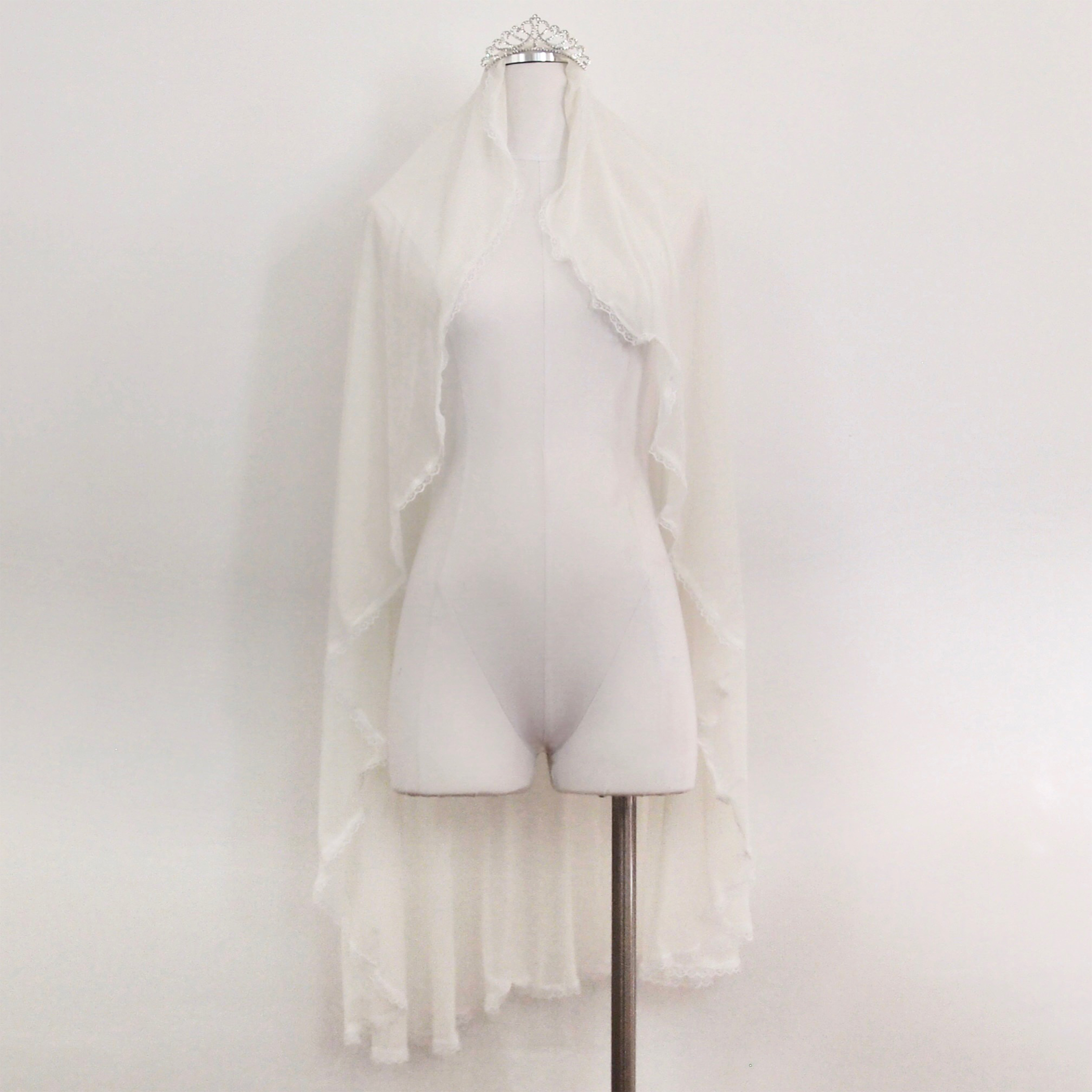 The Insight Veil is a handmade sheer veil featuring a lace hem and attached crystal tiara.